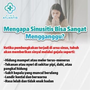 Konsultasikan keluhan sinusitis Anda kepada Dokter Umum di Klinik Atlantis untuk diagnosis tepat dan perawatan yang sesuai. Reservasi via Whatsapp Klinik Atlantis 081-1613-1718
